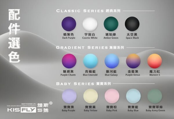 Kiss Fly Kis5主機具備雙功率切換功能,快速連吸或插拔兩次即可完成操作,白燈對應舒適模式(7W),紅燈則為澎湃模式(10W);搭載380mAh電池,支援全天使用,並配備Type-C快充,僅需約30–40分鐘即可充滿;提供多達15種時尚配色,機身輕巧便攜,展現個人風格;兼容4、5代煙彈,並針對Kis5二代煙彈特別調校,確保霧化穩定、口感更佳;操作簡單直觀,只需兩步即可切換模式,無論新手或進階玩家都能輕鬆上手。