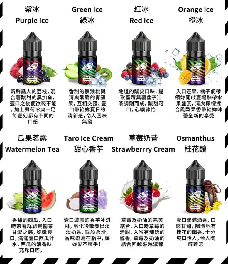 鯊克飲料系煙油,涵蓋了多種經典的飲料口味,滿足不同使用者對風味的追求。以下列舉幾款熱門的口味,讓您感受其獨特魅力: